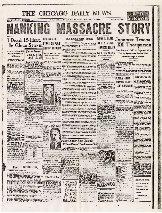 1937年12月15日《芝加哥每日新闻》刊登了斯蒂尔题为《南京大屠杀的故事——日军杀人数千》的报道:“离开南京之际,我们最后见到的场面是300多名中国人在临江的城墙前井然有序地遭处决,那儿的尸体有膝盖高。这是近几天疯狂的南京景象最典型的写照。”